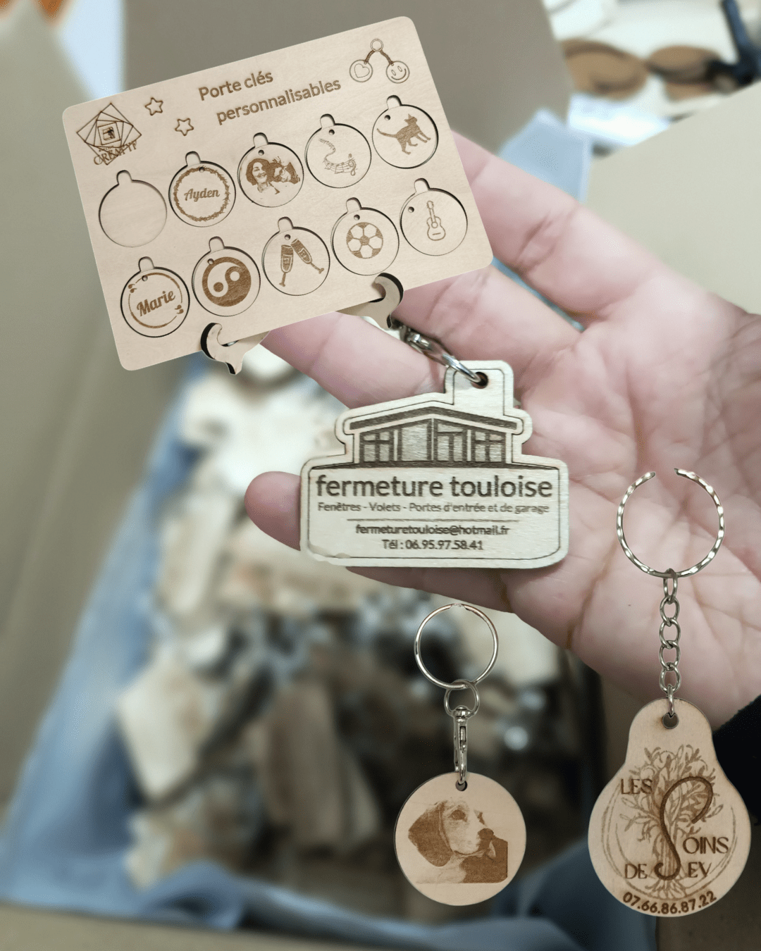 Dans notre atelier CREAT’YF, chaque porte-clés est conçu comme une création unique, gravée avec précision grâce à notre technologie laser.