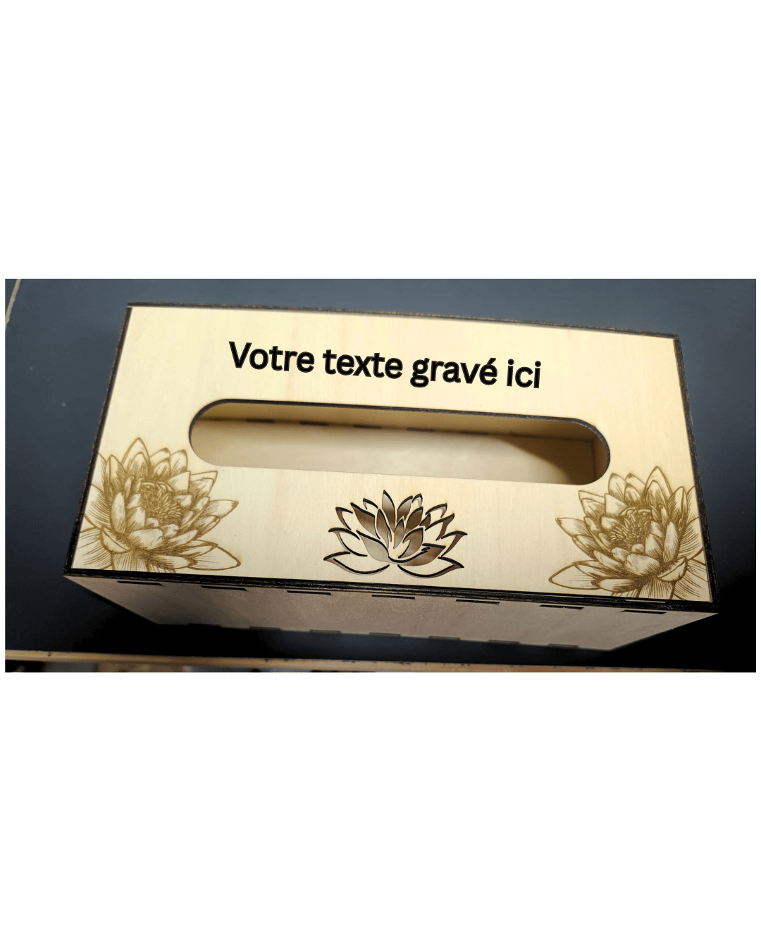 Alliez praticité et décoration avec cette boîte à mouchoirs personnalisée en bois, conçue pour s’intégrer harmonieusement dans toutes les pièces de la maison : salon, chambre, salle de bain, bureau ou espace professionnel.