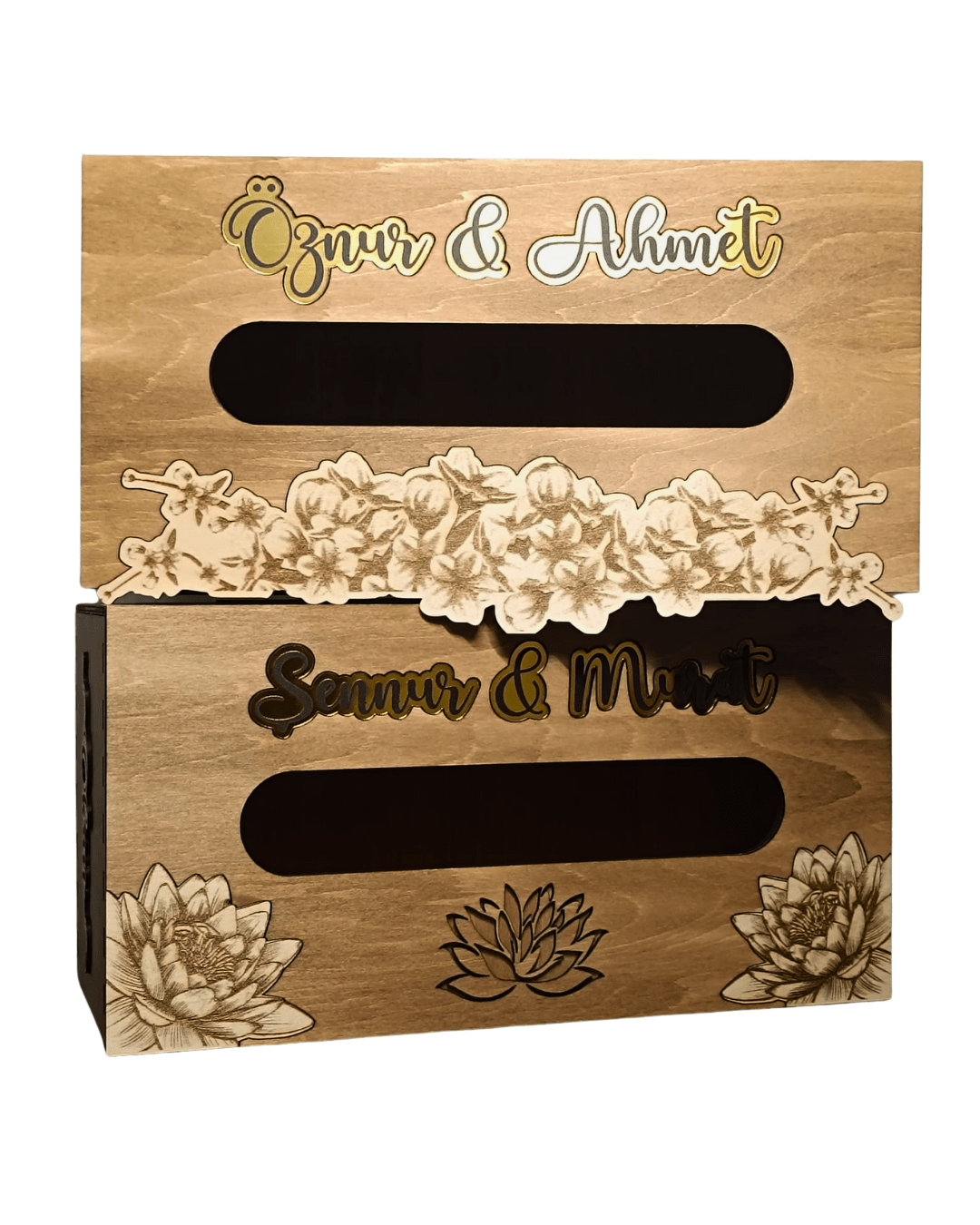 Fabriquée en contreplaqué de tilleul, elle est proposée en bois naturel clair et/ou teintée au brou de noix, pour un rendu chaleureux et authentique. Chaque boîte est soigneusement assemblée et décorée par gravure pour une finition élégante et durable.