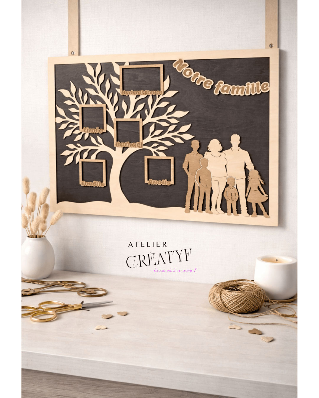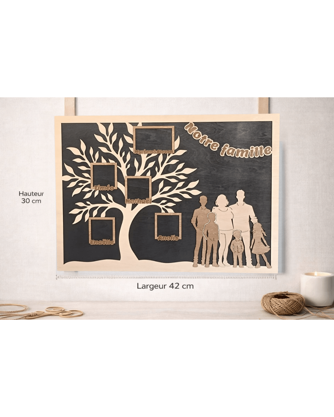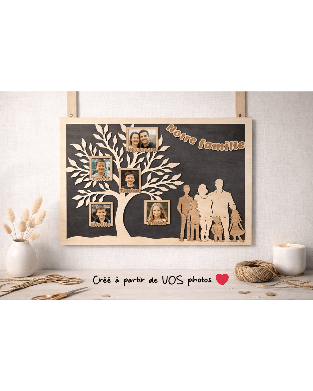 Offrez une décoration unique et pleine d’émotion avec ce cadre arbre de famille personnalisé en bois.