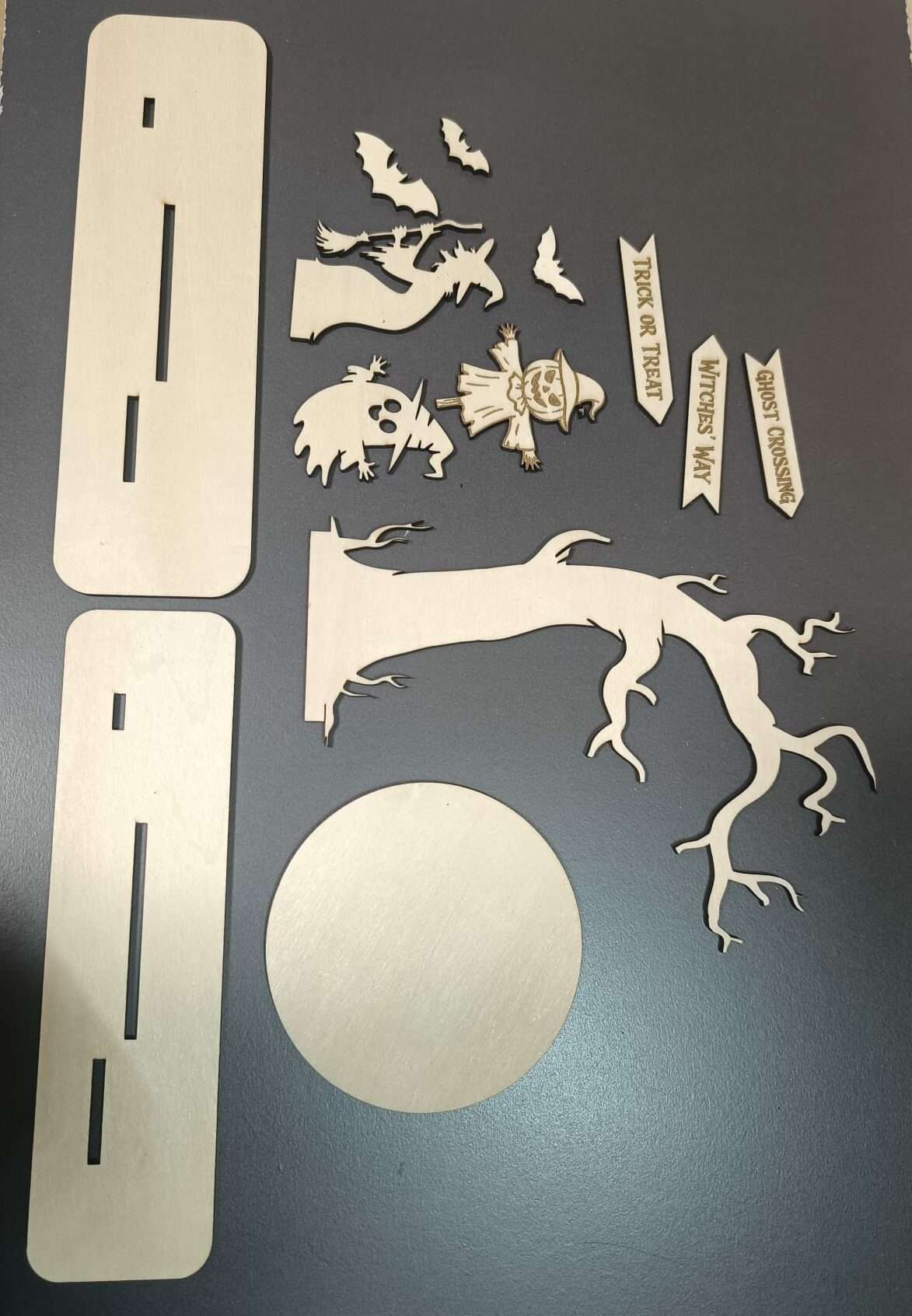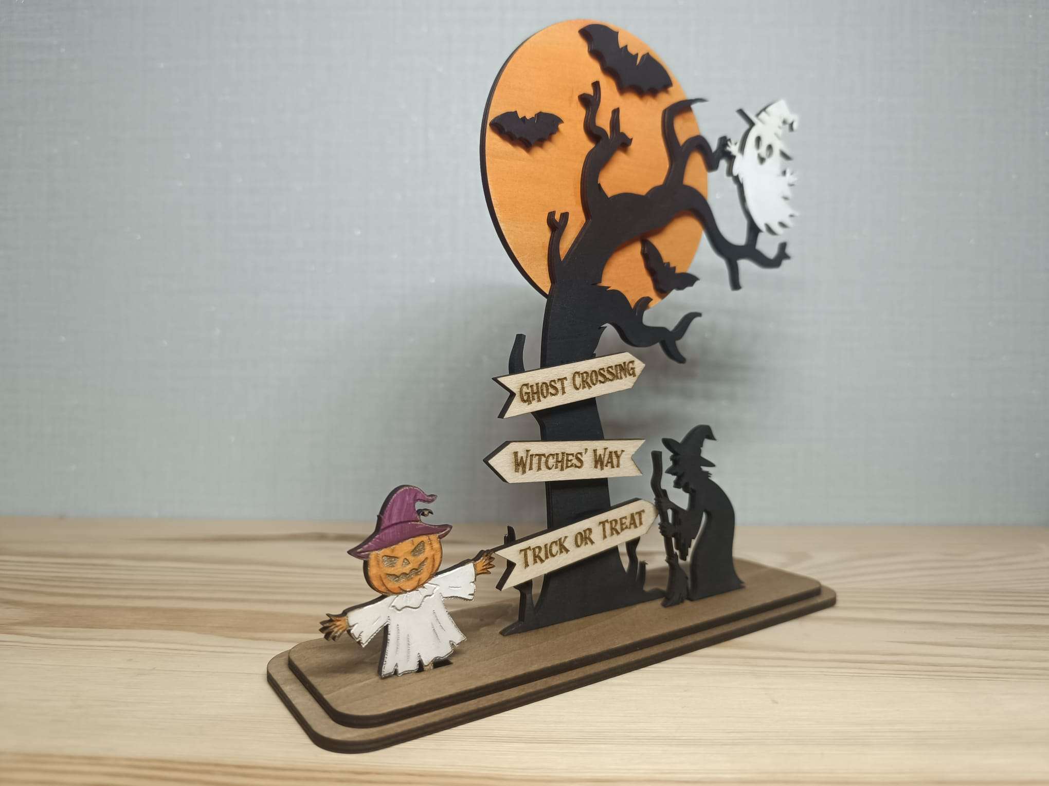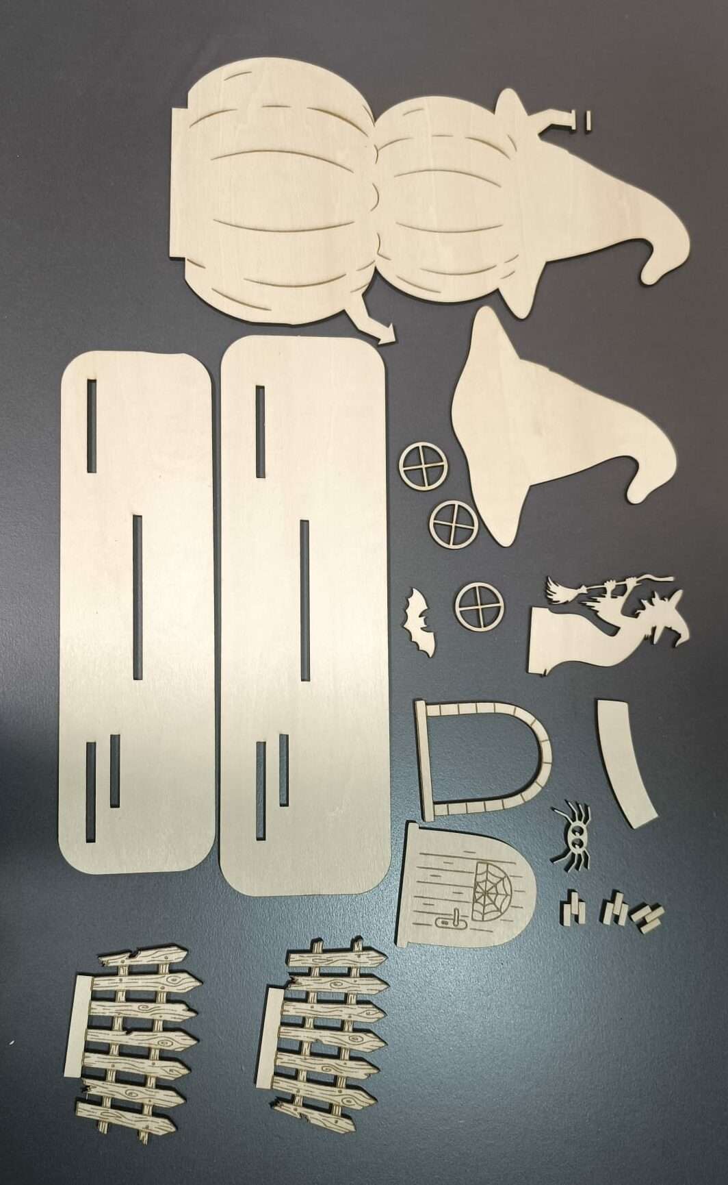 Apportez une touche originale et chaleureuse à votre décoration d’Halloween avec ces créations en contreplaqué de tilleul, montées sur un socle peint au brou de noix et mises en couleur à la peinture acrylique.