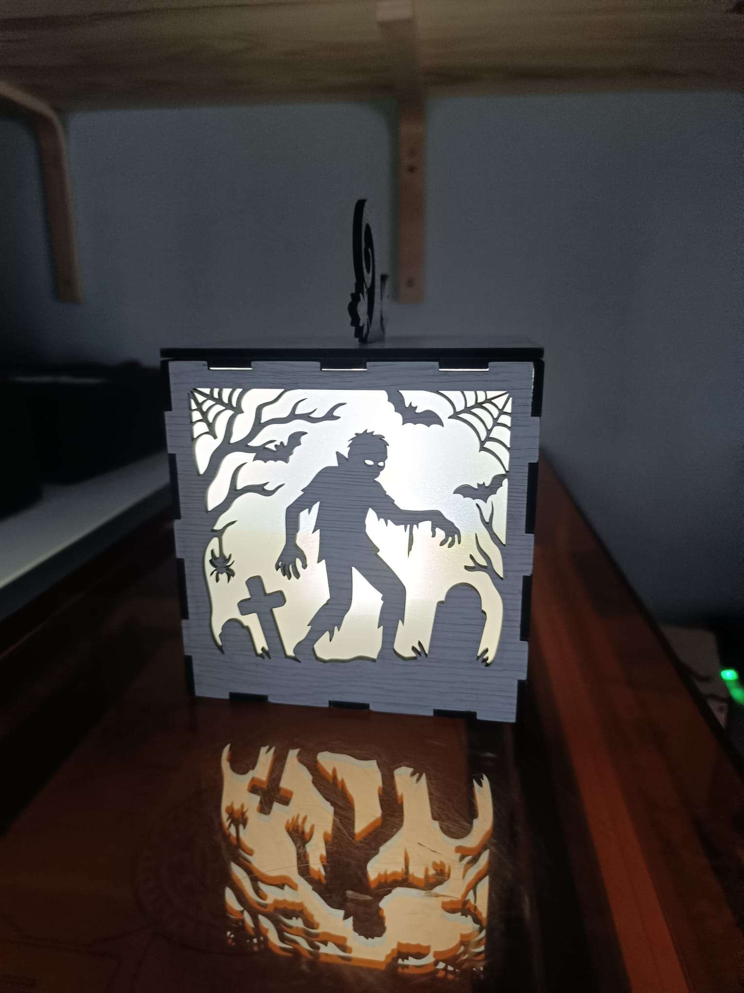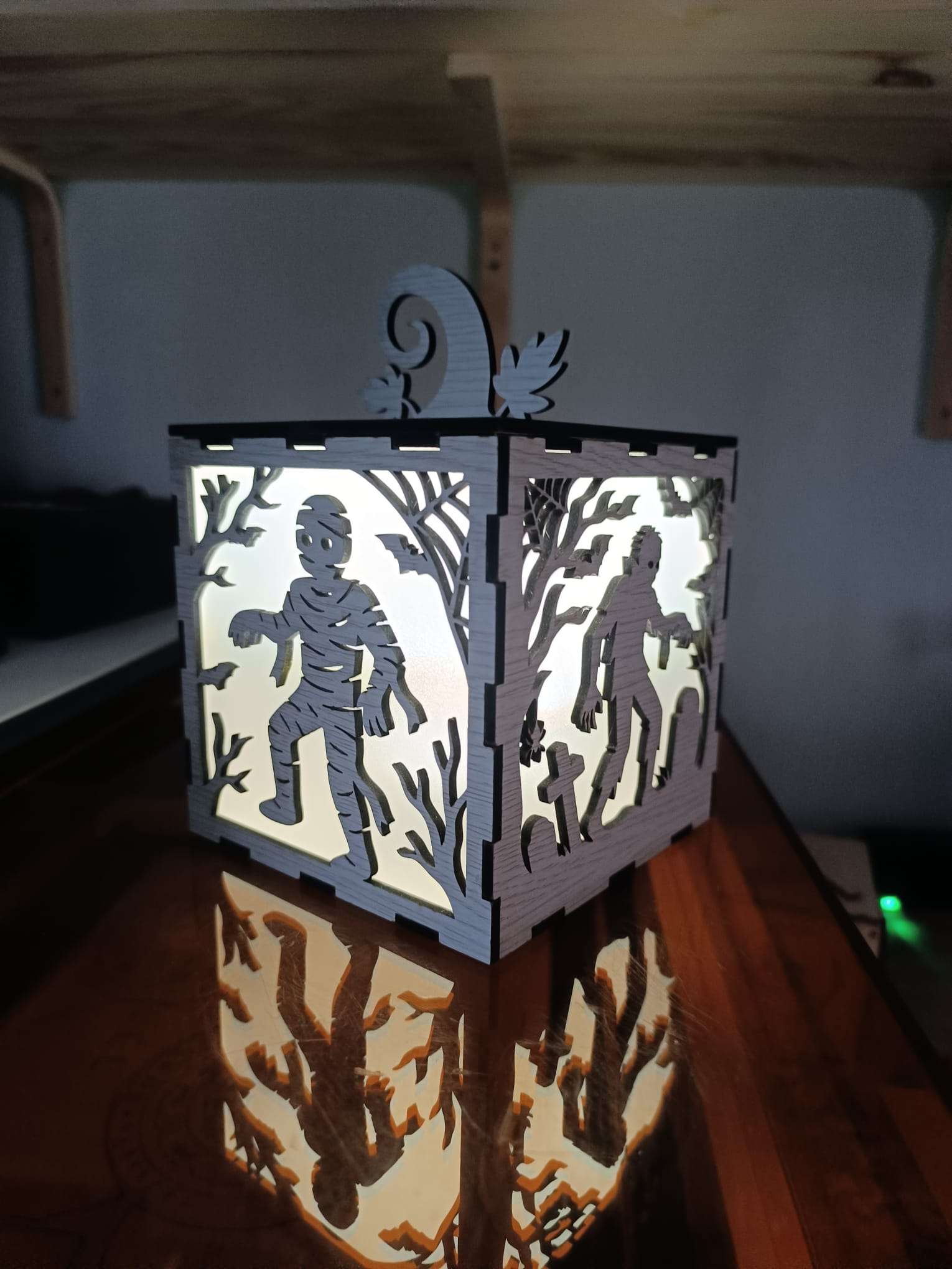 Ses 4 faces ajourées laissent apparaître des silhouettes terrifiantes de morts-vivants, projetant de belles ombres une fois la lumière allumée.