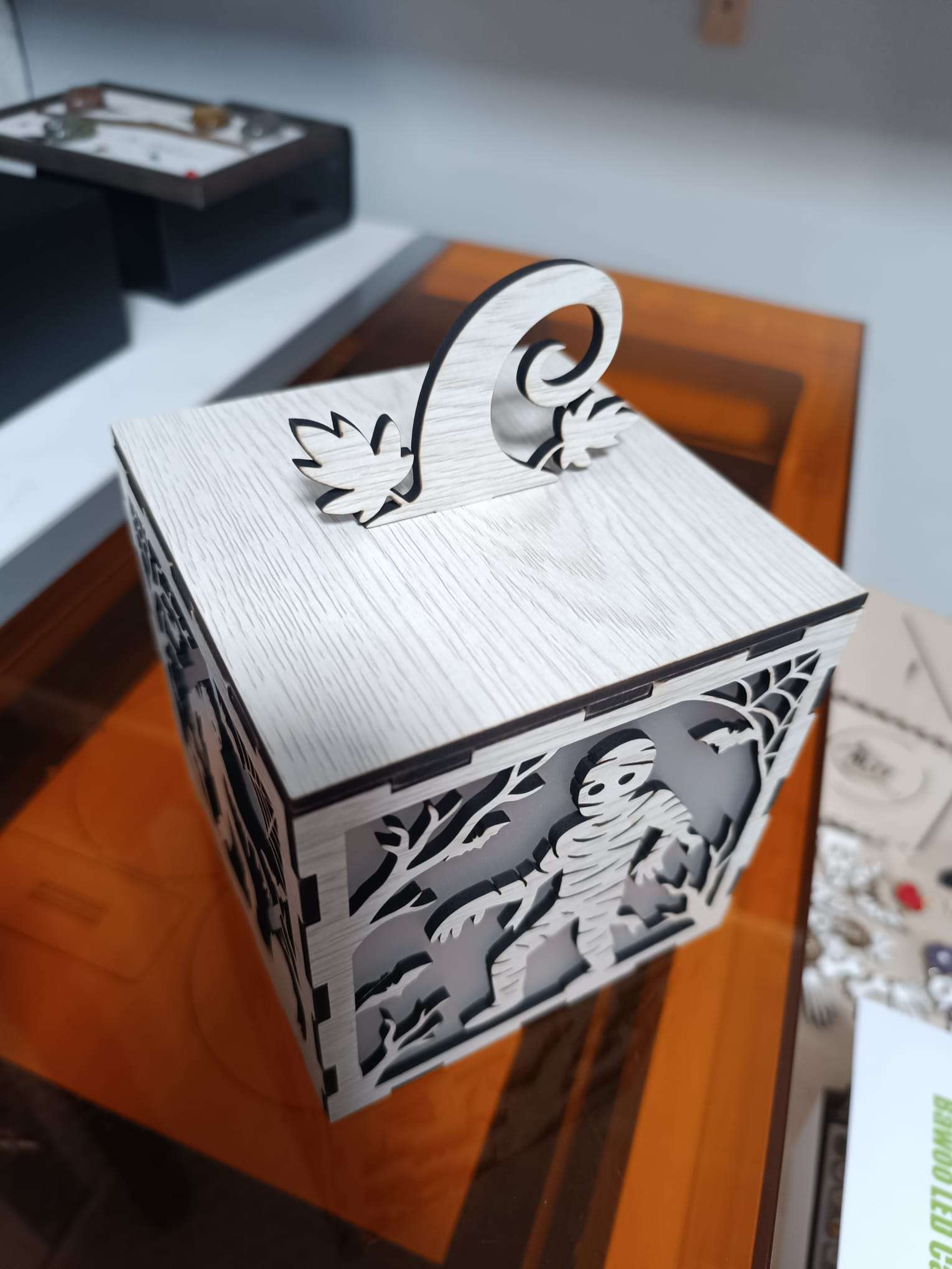 Apportez une ambiance effrayante à votre déco d’Halloween avec cette lanterne cube en mélamine frêne ivoire décorée de zombies 🧟♂️.